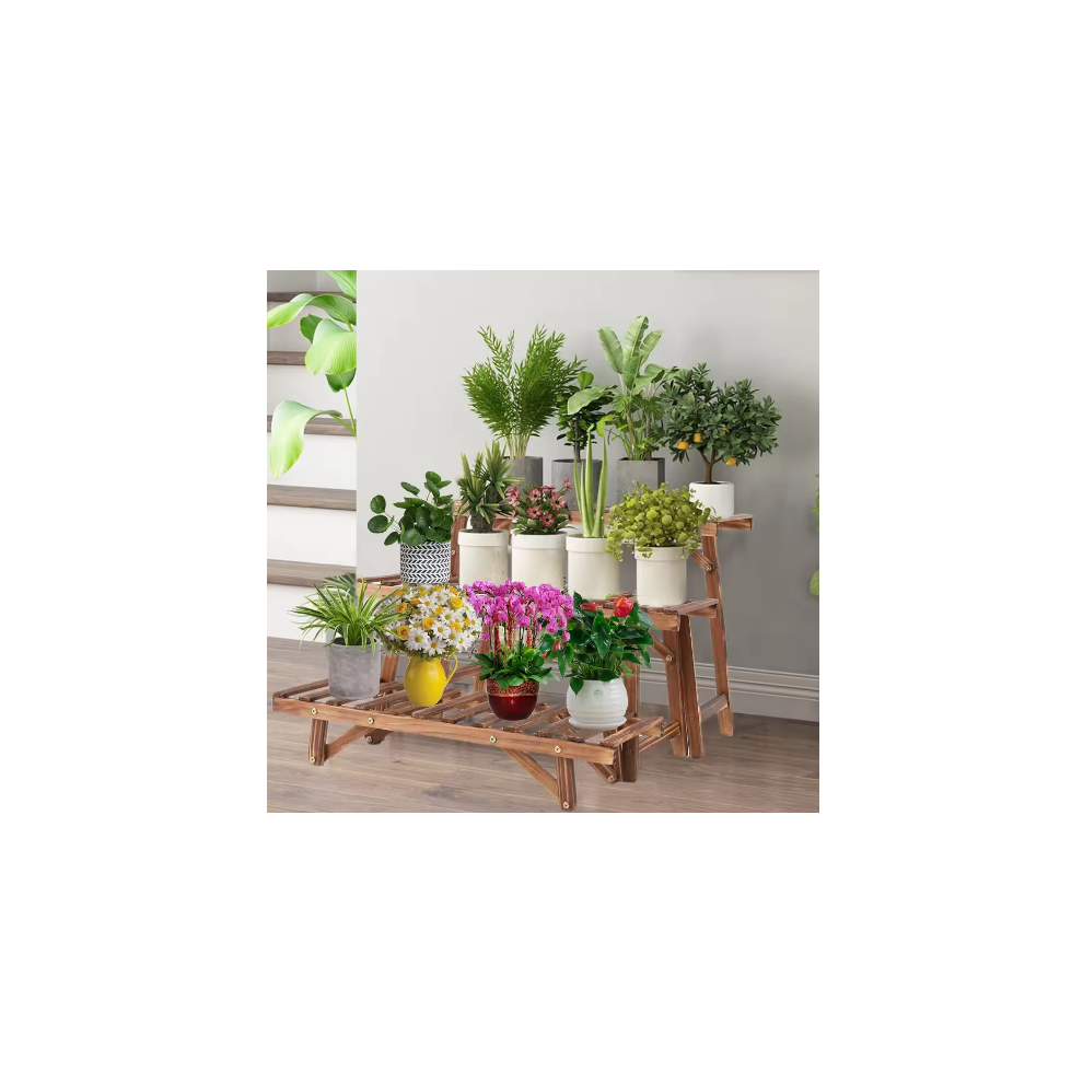 3-Tier Outdoor Wooden Flower Plant Pot Shelf Stand Folding Display