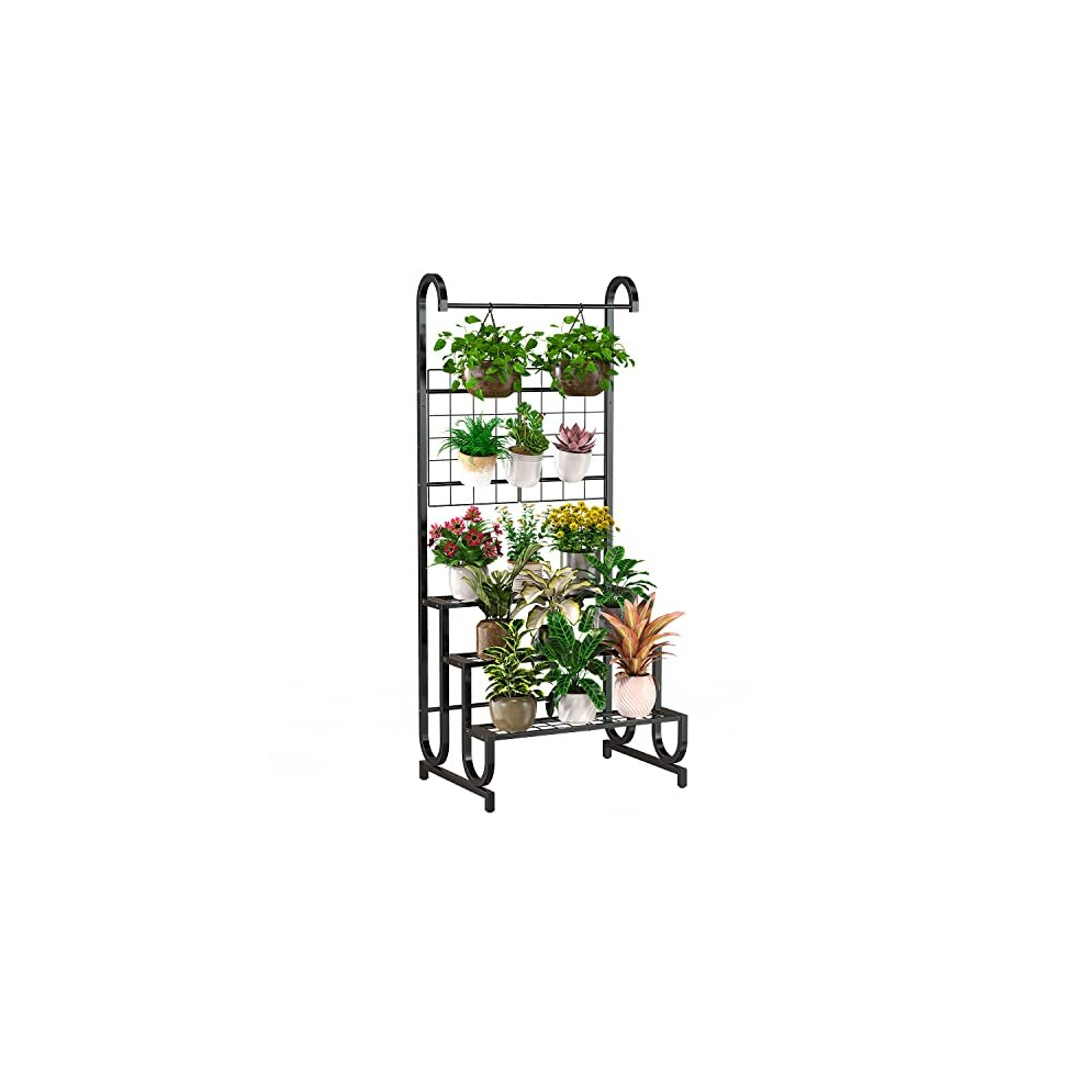3 Tier Hanging Plant Stand, Metal Outdoor Plant Stand Plant Shelf With Trellis, Heavy Duty Plant Ladder Shelf Plant Storage Rack Plant Display Shelf