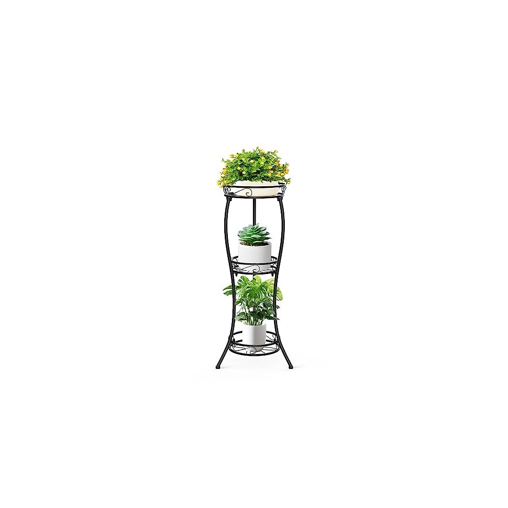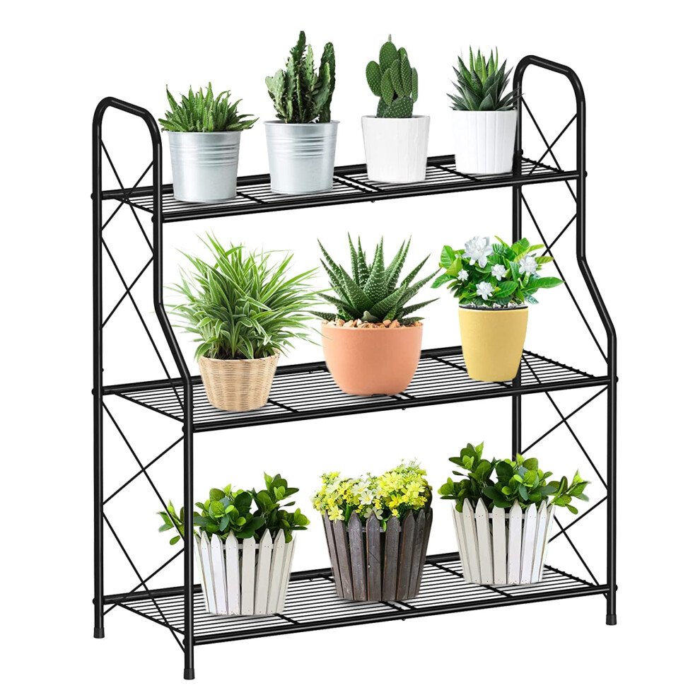 3Tier Metal Plant Stand, Indoor/Outdoor Plant Holder Rack for Living Room, Balcony, and Garden, Black