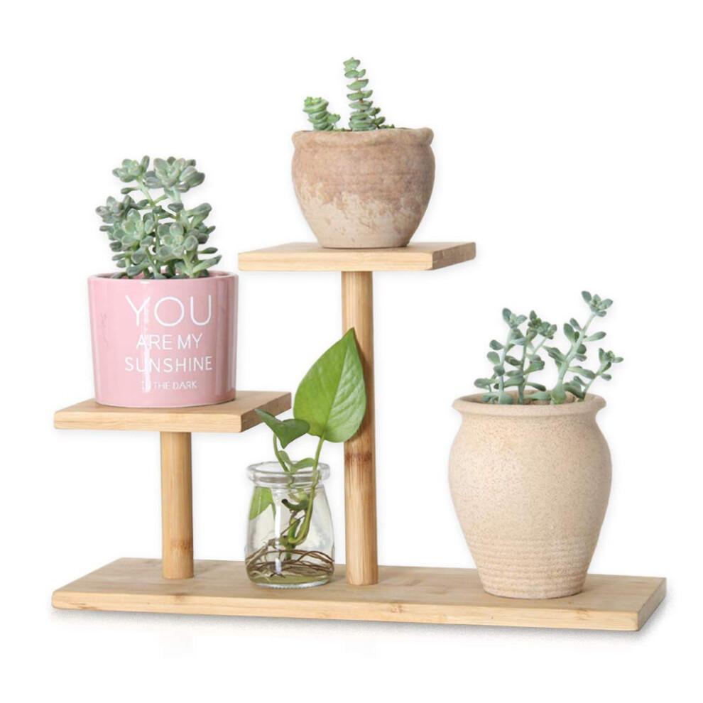 Bamboo Plant Stand Indoor, Mini 3-Tier Mini Tabletop Wood Succulent Plant Stand, Desk Organizer Display Rack for Outdoor Desk Garden Balcony Patio