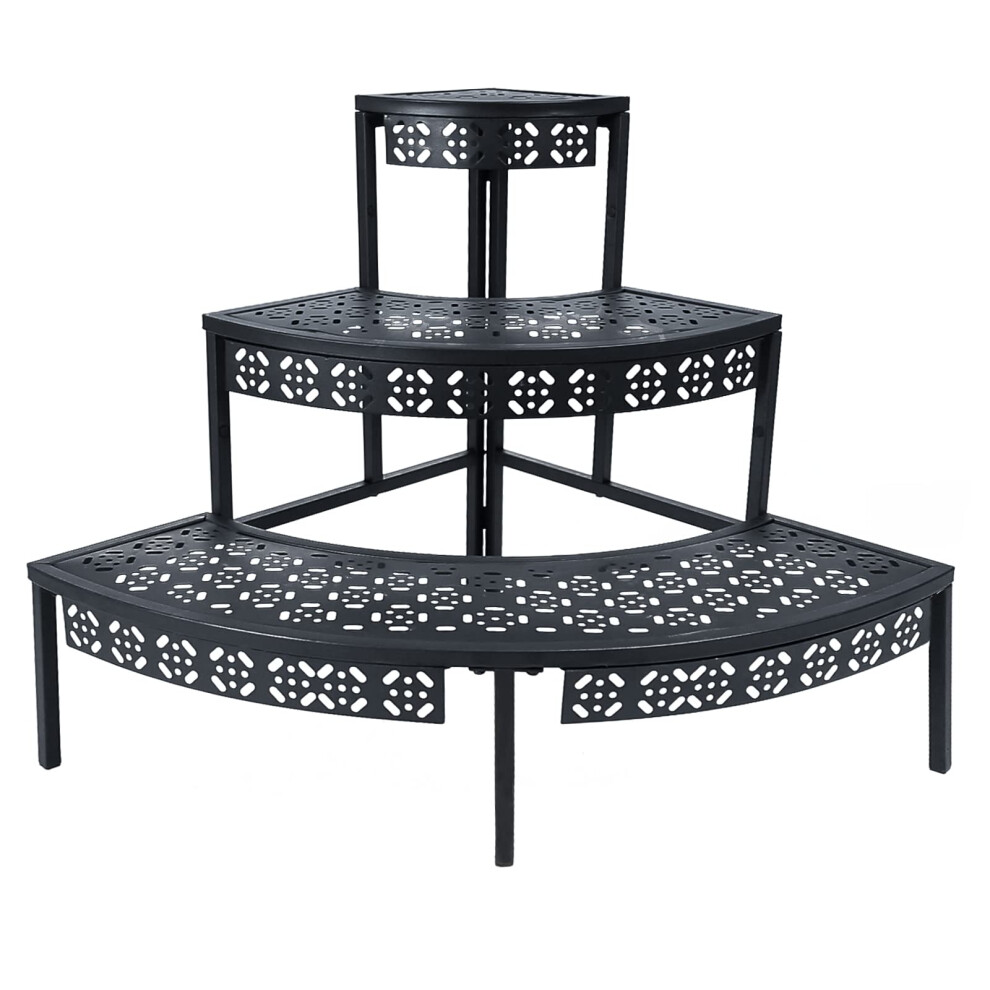 3 Tier Plant Stand Semi-Circular Flower Pot Organizer Rack Quarter Round Plant Display Holder Outdoor Storage Shelves Metal Corner Shelf Planter Shel