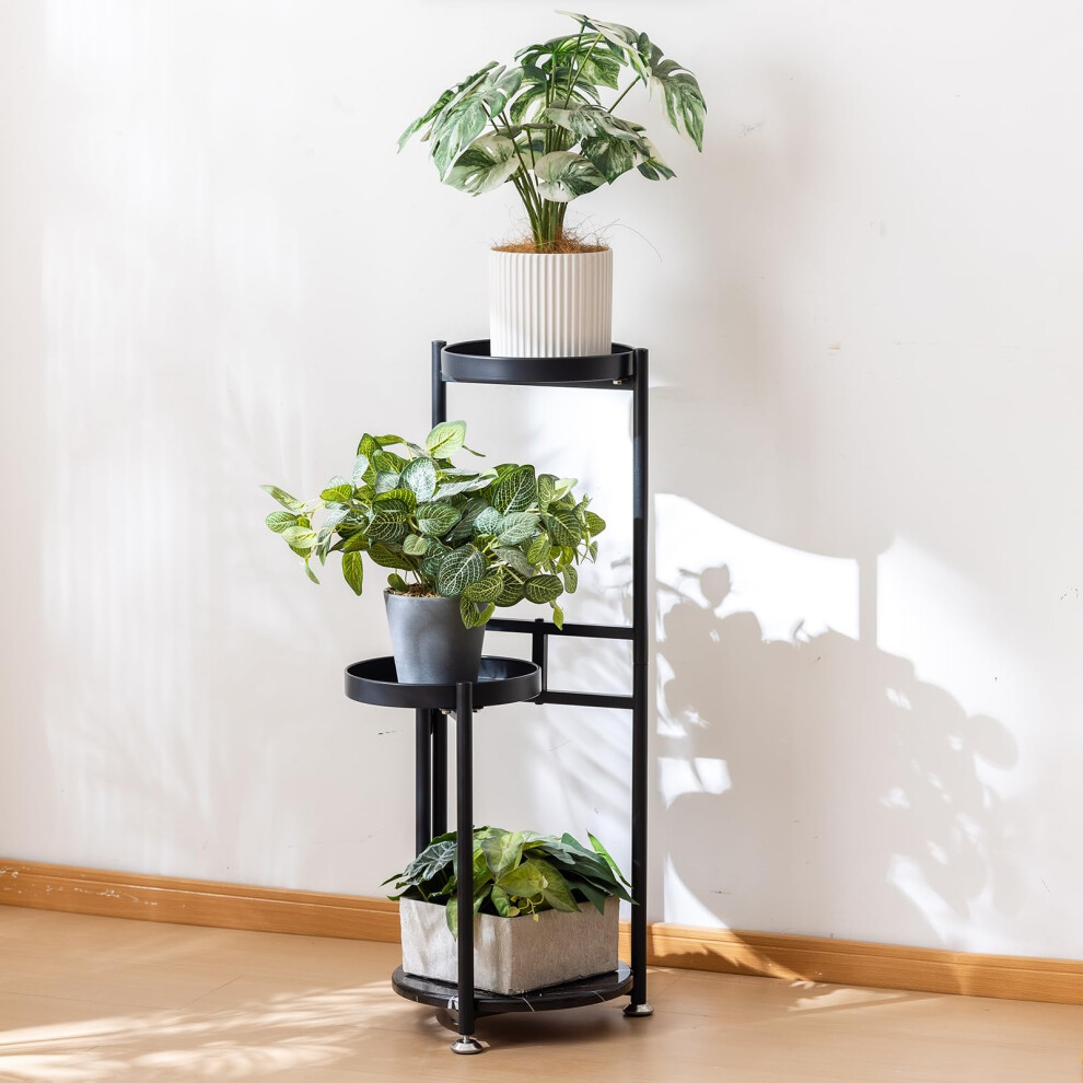 WIGSELBL Plant Stand 3 Tier Plant Shelf for Indoor Outdoor,Metal Outdoor Flower Pot Stand Plant Stand Holder Rack for Living Room Balcony and Garden(Nero)