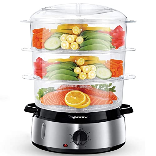 Aigostar 3 Tier Food Steamer, Electric Vegetable Steamer with BPA Free, 9 Litre