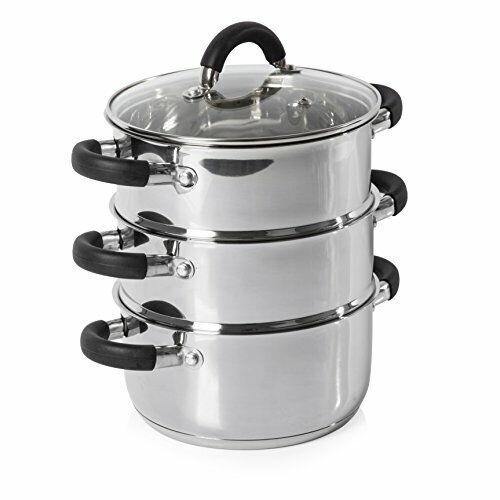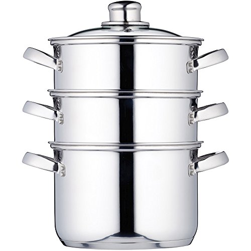 KitchenCraft 3 Tier Food Steamer Pan/Stock Pot in Gift Box, Induction Safe, Stainless Steel, 18 cm (7")