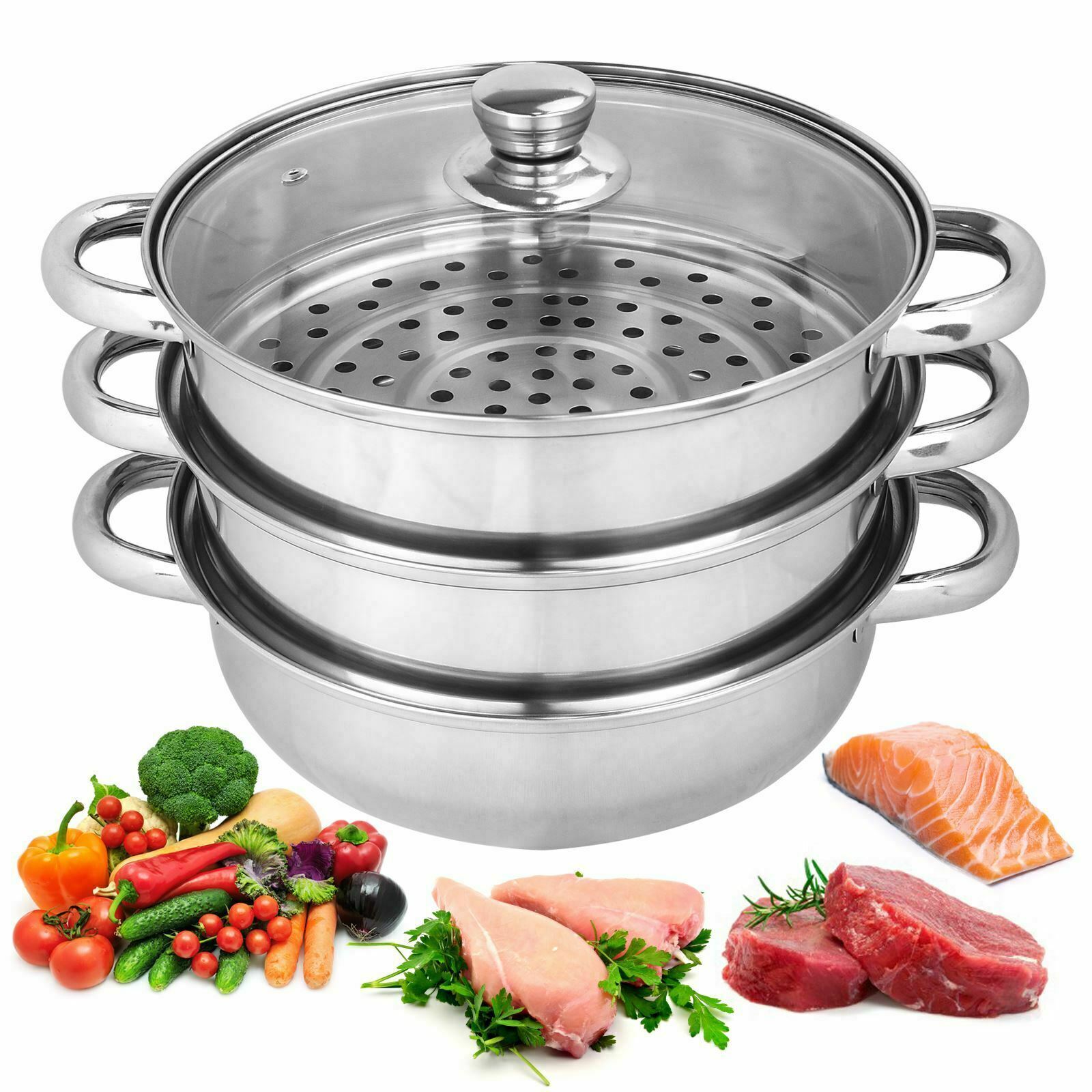 Stackable 3 Tier Stainless Steel Steamer Cooker Pot Set Cook Food Pressure Po UK