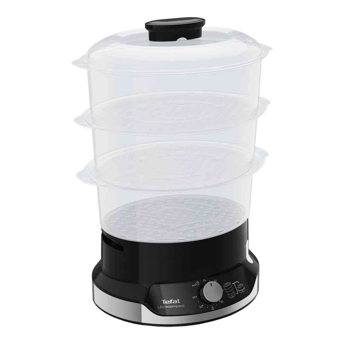 Tefal TE4865 Ultra Compact V2 3 Tier Steamer - Black, Black