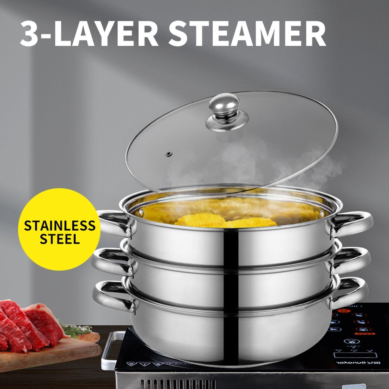 New 3 Tier Steamer Induction Stainless Steel Kitchen Cookware 22cm Cooking Pot