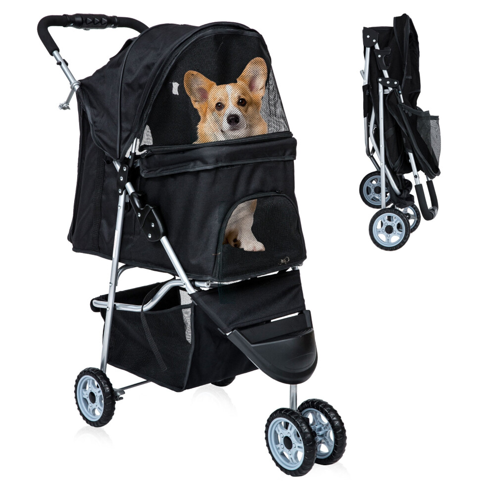 Folding Pet Stroller 3 Wheel Dog Jogger Travel Carrier Adjustable Canopy Storage Brake Mesh Window for Small Miniature Dog