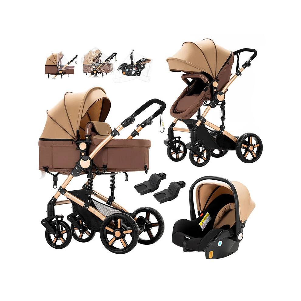Lightweight 3-in-1 Newborn Baby Stroller with Four-Wheel Pram and Carriage