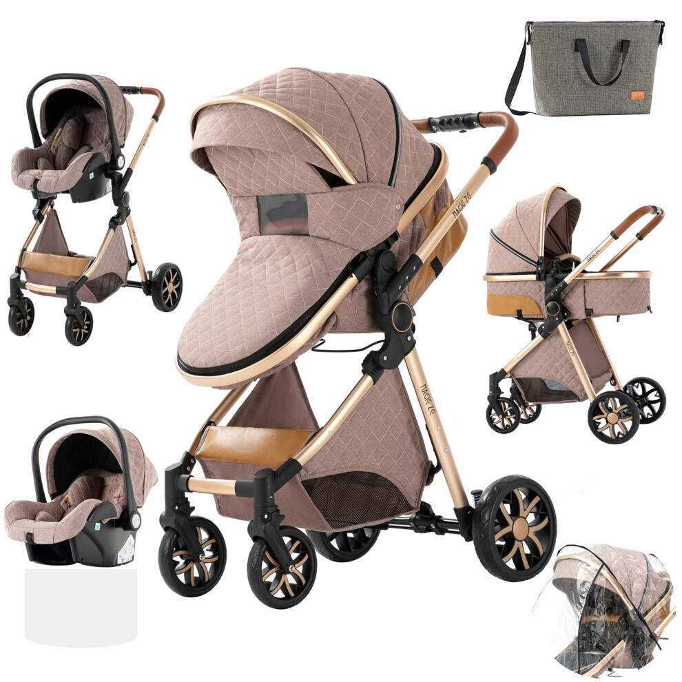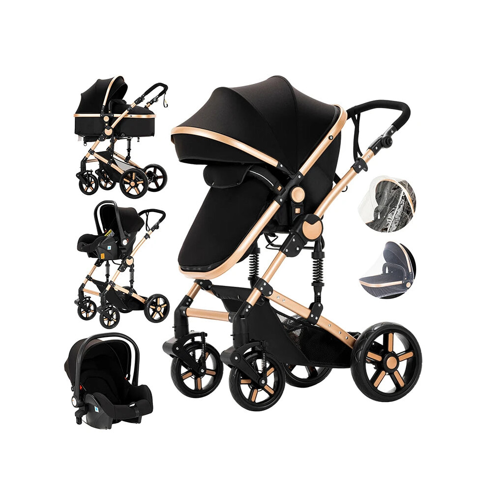3-in-1 Lightweight Baby Stroller & Car Seat Combo - Four-Wheel Newborn Carriage
