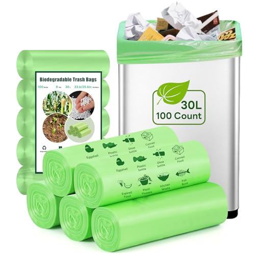 30 Litre Bin Liners 100 Bags, Biodegradable Food Waste Garbage Bags, 30L