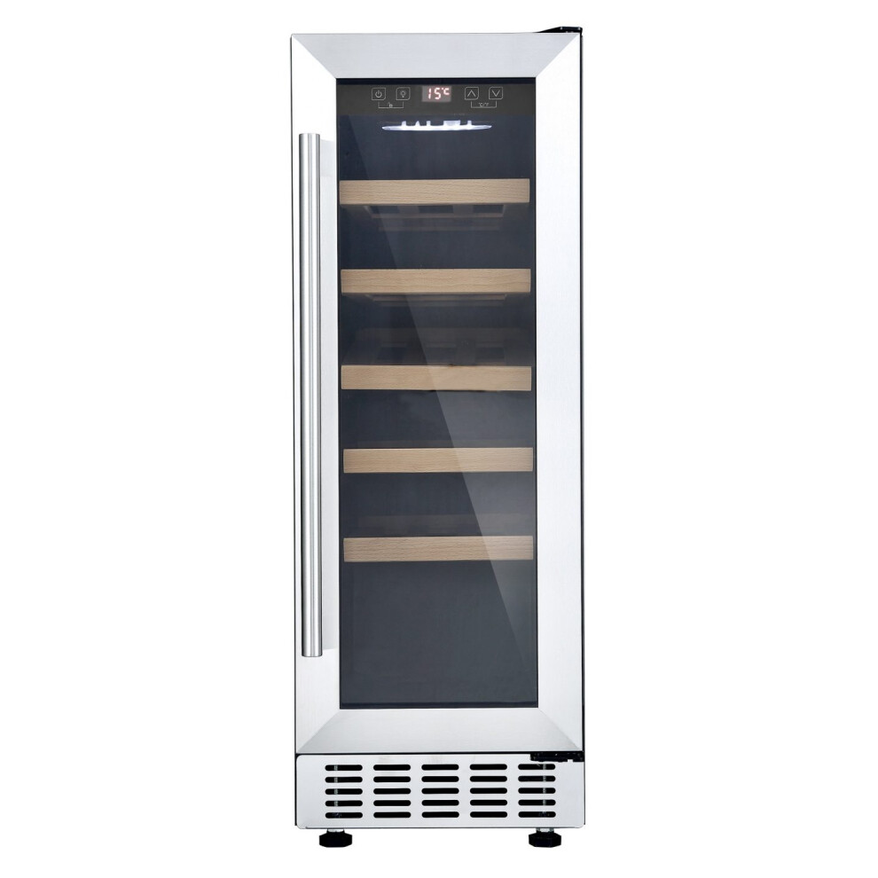 Cookology CWC300SS Freestanding Under Counter Fridge Cabinet 30cm Wine Cooler in Stainless Steel - 20 Bottle & 60 Litre Capacity - 5 Sliding Shelves - Digital Temperature Control - Reversible Door