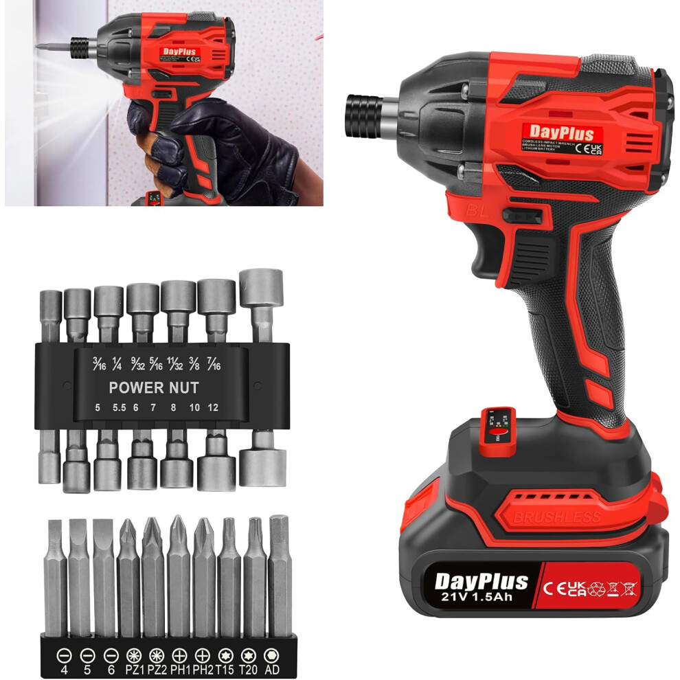 21V Brushless Cordless Impact Wrench 1/2 Inch Drive 300Nm Torque LED Light Variable Speed