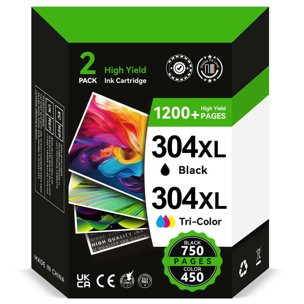 304XL High Yield Ink Cartridges, 304 Ink Cartridges Combo Pack Replacement for HP 304 Ink Cartridges Black and Colour Original, Printer Ink 304 XL for