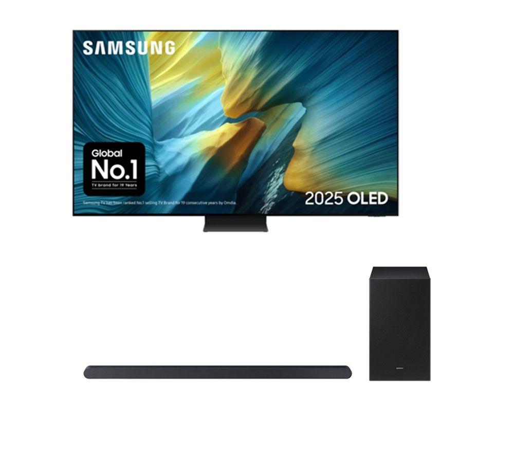 55" Samsung QE55S95F OLED Glare Free 4K Vision AI Smart TV & HW-S700D/XU 3.1 Wireless Sound Bar Bundle, Black