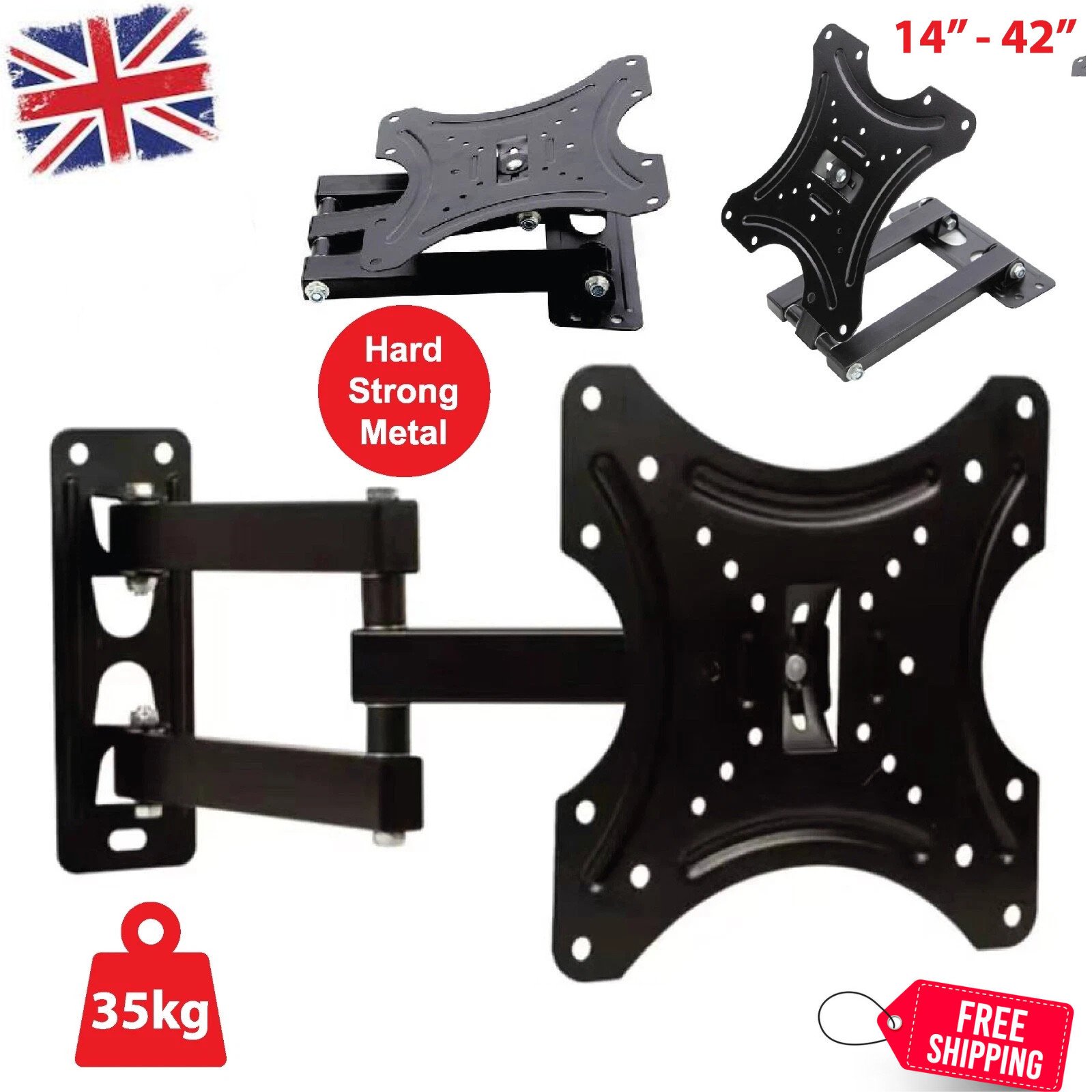 Full Motion TV Wall Mount Bracket Swivel Tilt 14 18 26 32 40 42 Inch LED LCD UK