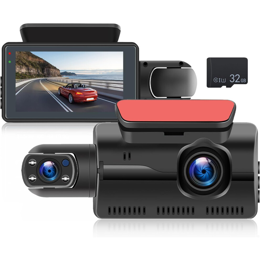 Dash Cam Front and Inside Camera with 32G SD Card, 3 Inch IPS Screen Dashboard Dual Cameras for Cars, Night Vision, G-Sensor, Parking Monitor, Motion
