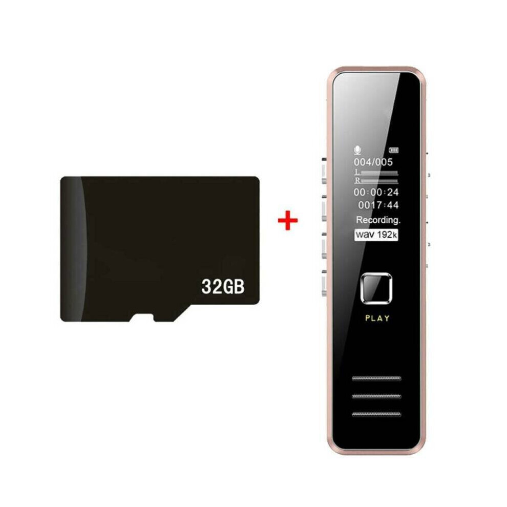 (Rose Gold + 32G SD Card) 32GB Rechargeable Digital Audio Sound Voice Recorder Dictaphone MP3 Player USB