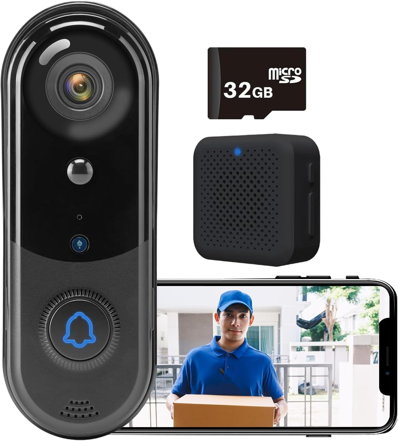 Doorbell Camera No Monthly Fee with 32G SD Card,Doorbell Camera Wireless 1080P