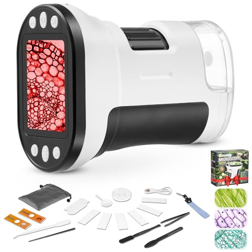 Gleamkid Kids Microscope, 200-1000X Handheld with 2” LCD, Rechargeable Mini Microscope Kit, Photo & Video, 32G SD Card, Science Edu Gift for Kids 8-12