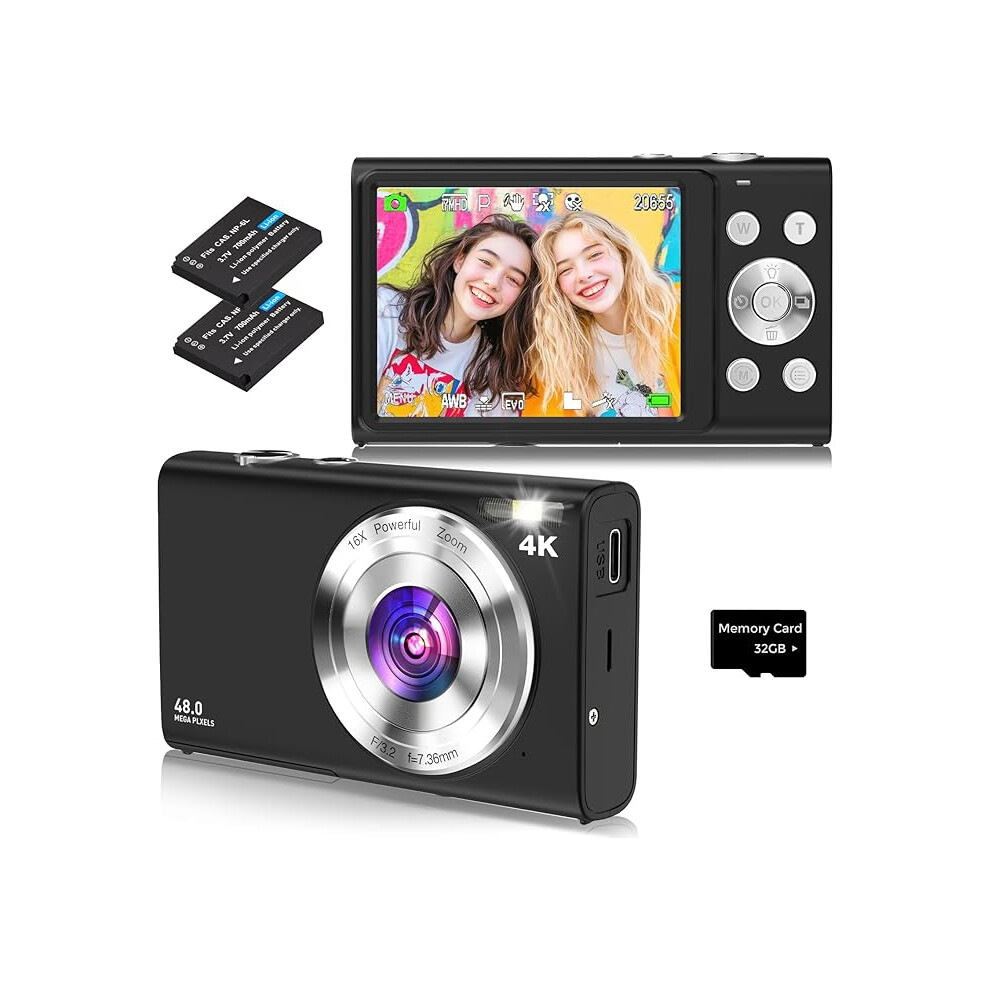 Digital Camera, 4K Autofocus Compact Camera with 32G SD Card HD 48MP with 2.8" L