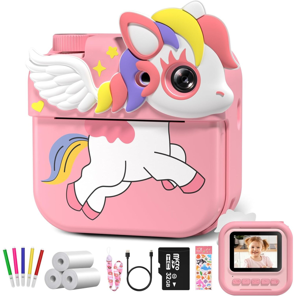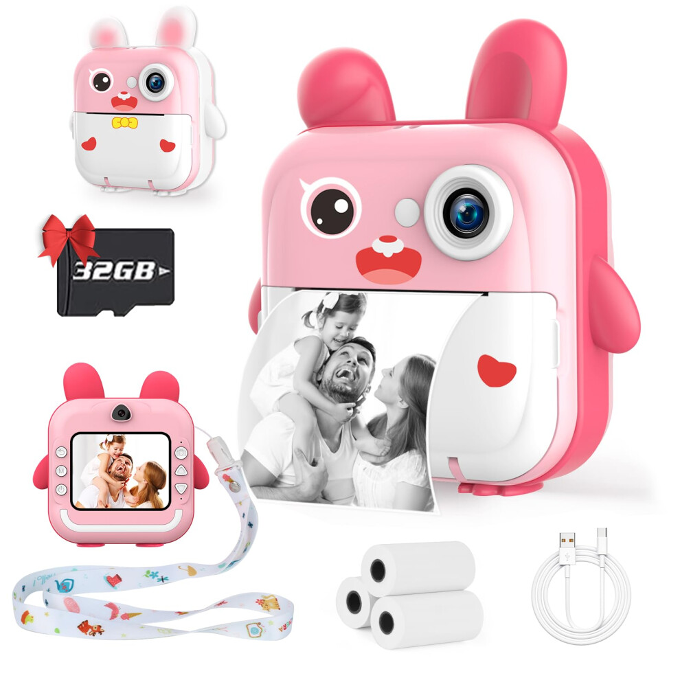 Kids Camera Instant Print, 2.4'â Instant Camera for Kids with 32G SD Card & Print Photo Paper, 1080P HD Video Toddler Camera, Christmas Birthday