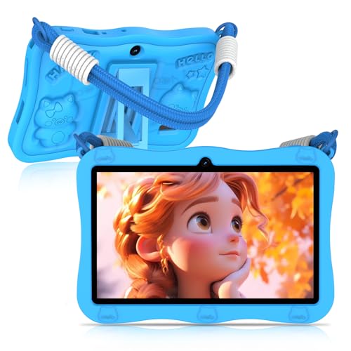 QISTOQI Kids Tablet, 7 inch 32GB Android Tablet for Kids, Toddler Tablet with Bluetooth, WiFi, Parental Control, Dual Camera, GMS, Shockproof Case, Kids App Pre-Installed (Blue)