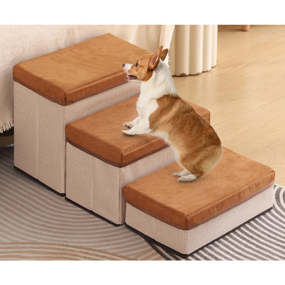 Dog Stairs With Storage 3Steps Foldable Pet Stairs For Bed, Couch, For Small Medium Large Dogs And Cats, 60x34.5x31 Cm