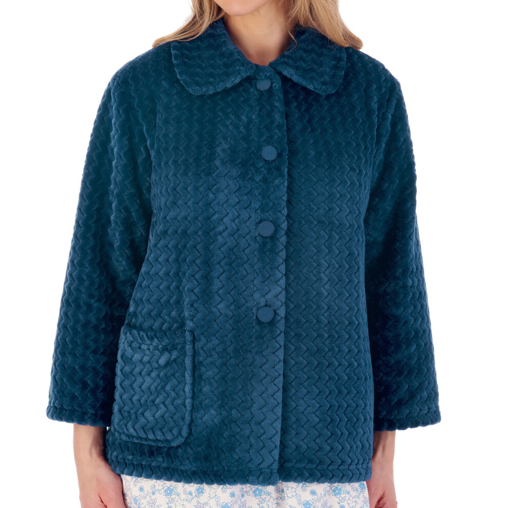 (Teal, Medium - UK 12/14) Slenderella Ladies Zig Zag Fleece Button Up 3/4 Sleeve Bed Jacket