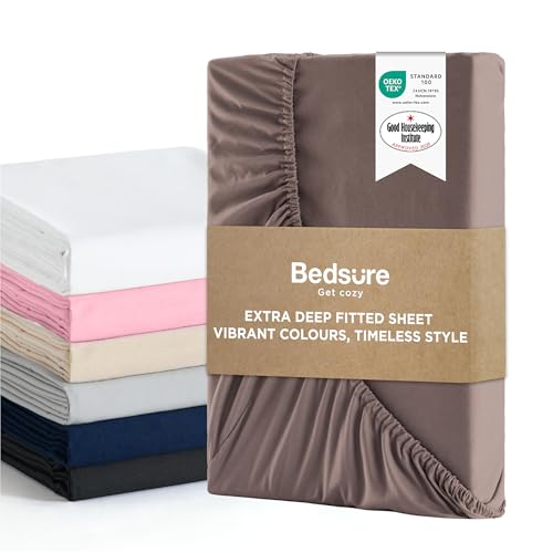 Bedsure Small Double Fitted Sheet Deep - Bed Sheets Extra Deep Pocket 16 Inches (40 cm), Soft Brushed Microfiber for 3/4 Bed, Taupe, 122x190cm