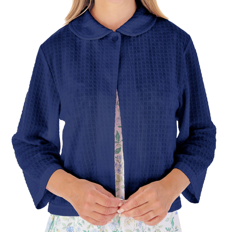 (Navy, Extra Large - UK 20/22) Slenderella Ladies Waffle Knit Button Fastening 3/4 Sleeve Bed Jacket