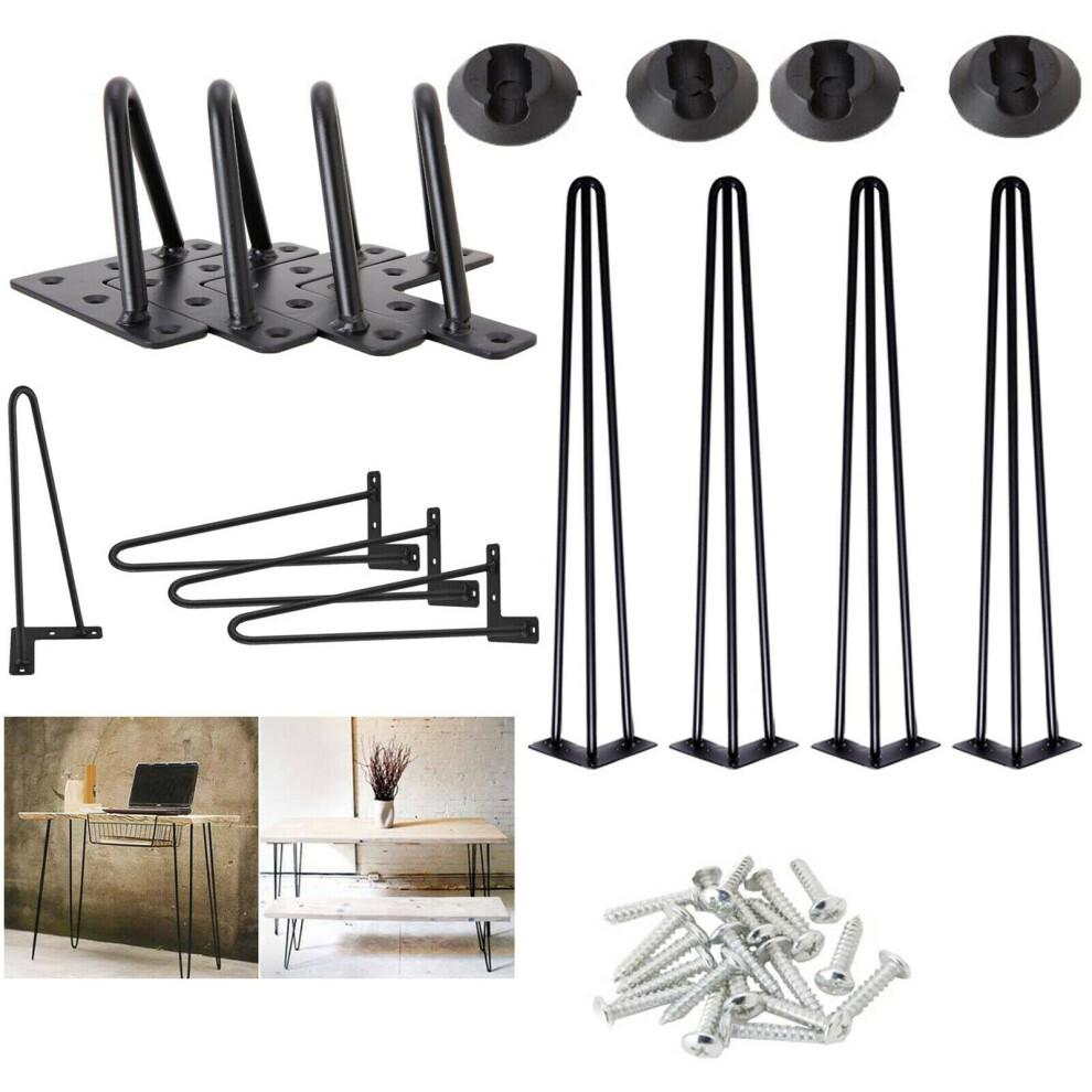 (34 Inch 3Rods, Black) Hairpin Legs Metal Steel Table Legs Set of 4 for Desk DIY Furniture, Dinning Table, Bench, TV Stand