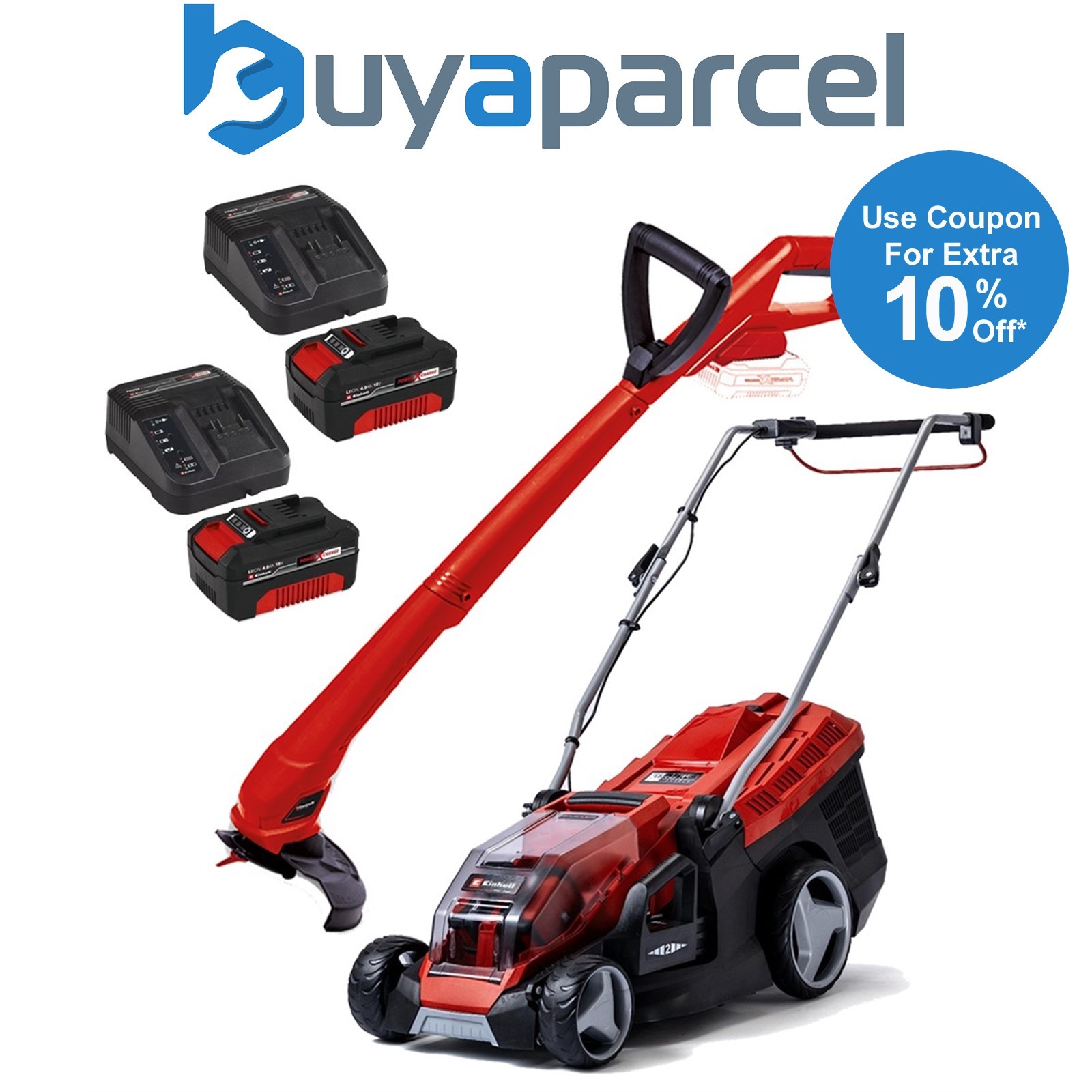 Einhell Twin 18v / 36v Lawnmower 34cm Cut 2x4Ah Battery + Grass Trimmer Strimmer