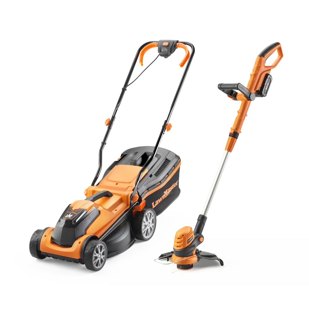 LawnMaster MX 24V 34cm | Cordless Lawnmower Trimmer Set with Spare Battery