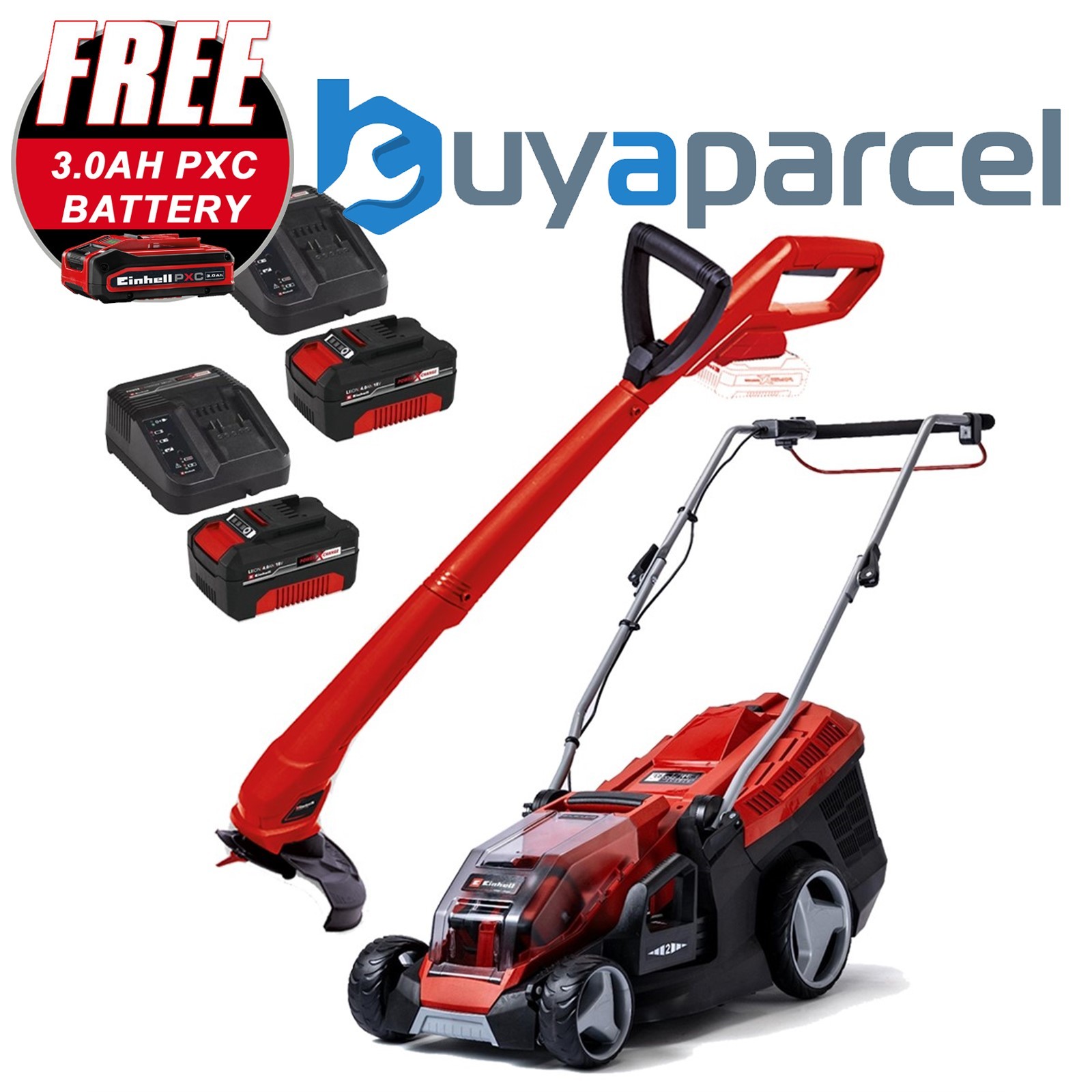 Einhell Twin 18v/36v Lawnmower 34cm 2 x 3Ah Battery + Grass Trimmer Strimmer