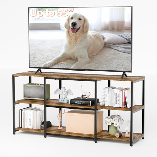 Aquzee TV Stand 55 Inch, 125 cm Wide TV Unit for 32 40 50 55Inch TVs, 3-Tier Wooden Industrial TV Cabinet Entertainment Units with Storage, Living Room Small Open Media Console Table, 125×35×59 cm