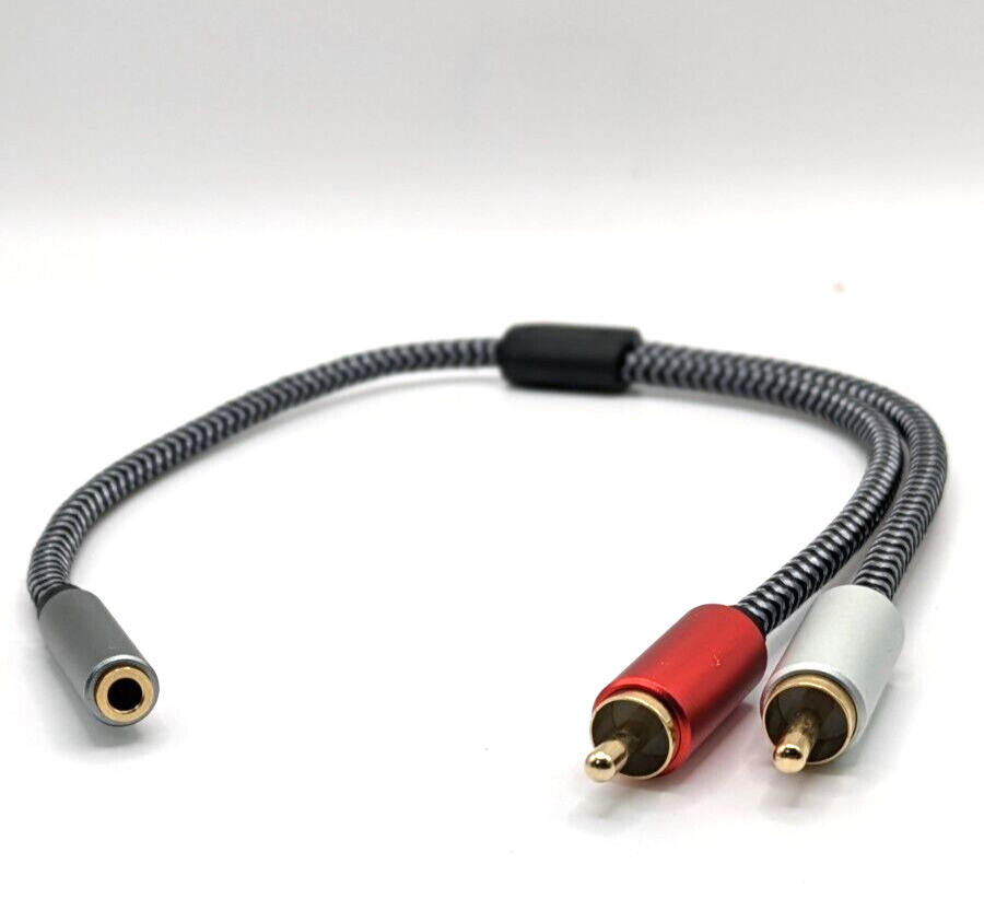 3.5mm to RCA Phono Cable Female Jack Braided Good Quality 33cm