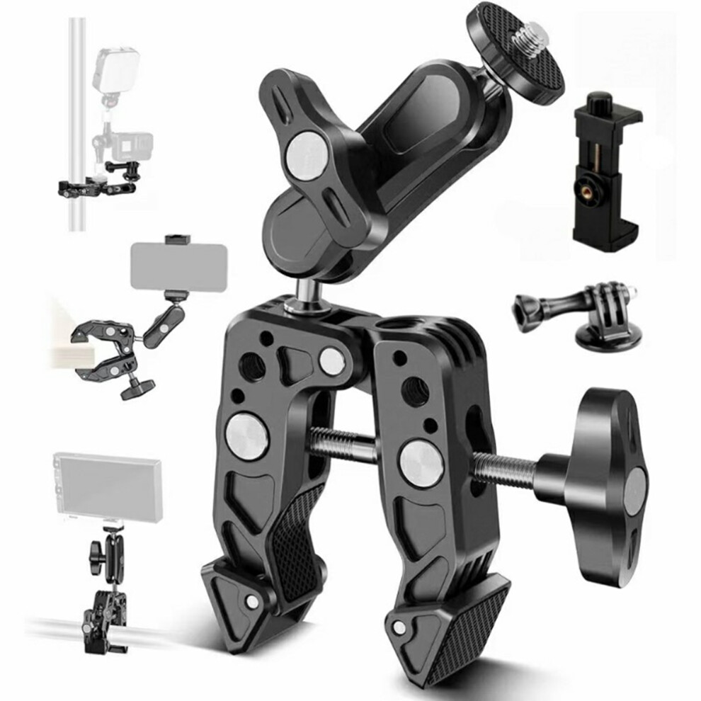 For DJI / GoPro / Insta360 Action Camera Crab Claw Clamp 360 Degree Rotation Magic Arm Mount Phone Holder