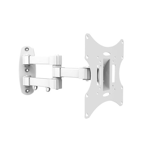PureMounts TV Wall Mount, Swivelling Tilting Universal Bracket for 10-37 Inch Flat & Curved Heel Monitor up to 30 kg, Max. VESA 200 x 200 mm, White
