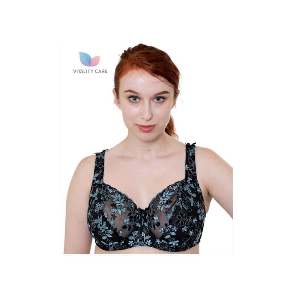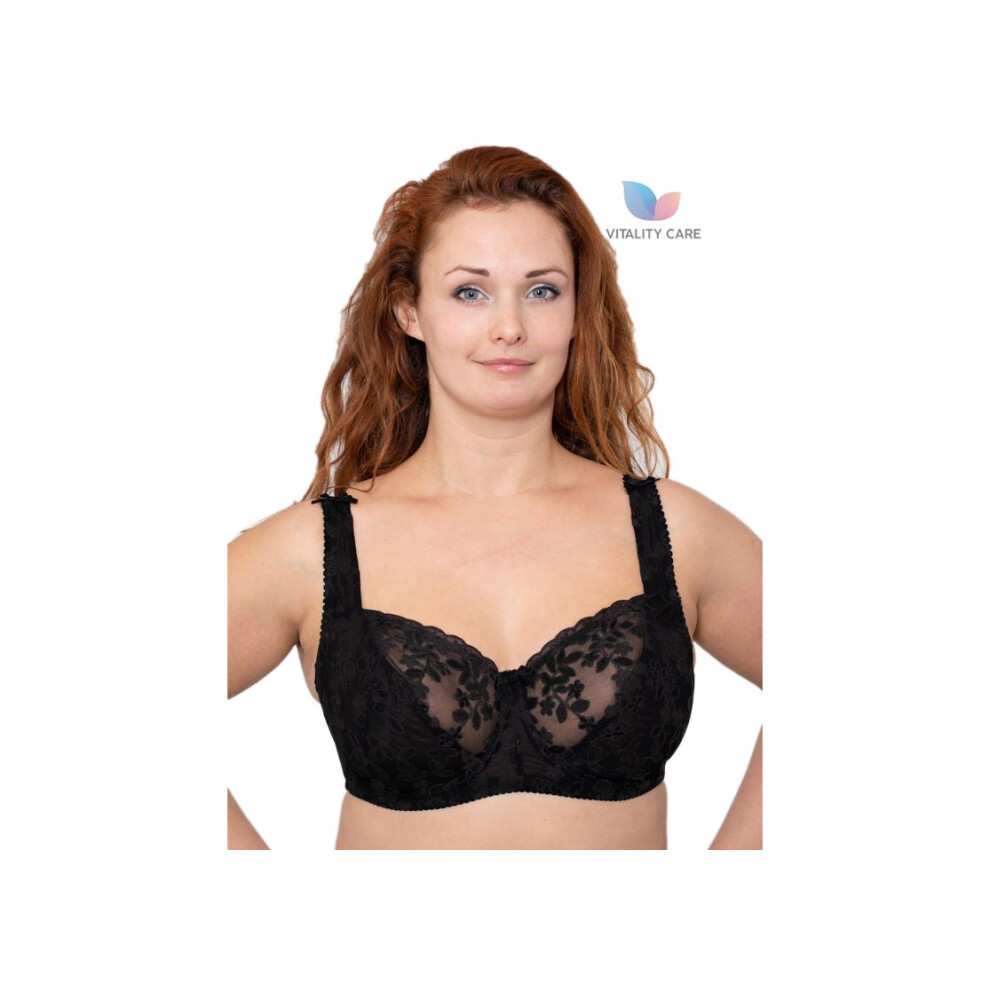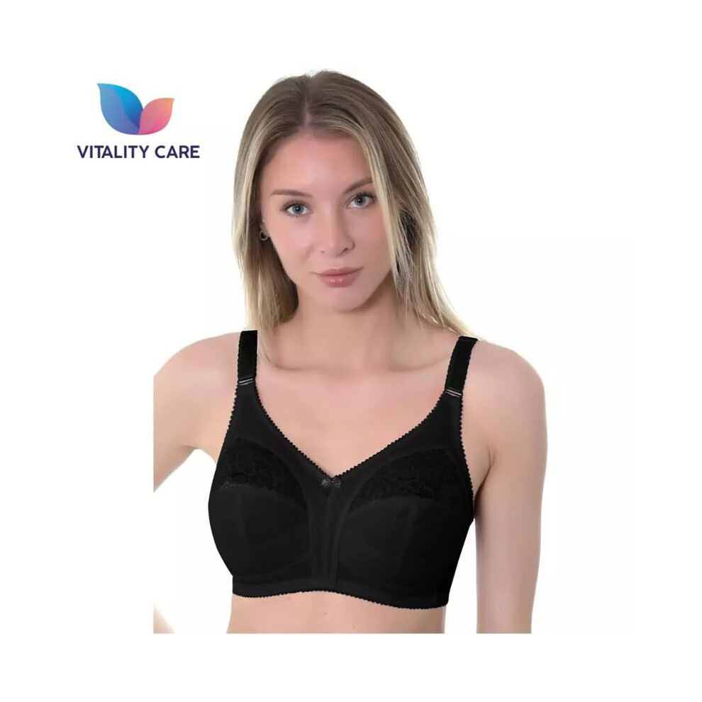 (38, DD) Vitality Care Womens Black Plus Size Full Coverage Non Wired Firm Hold Lace Non Padded Support Bra UK
