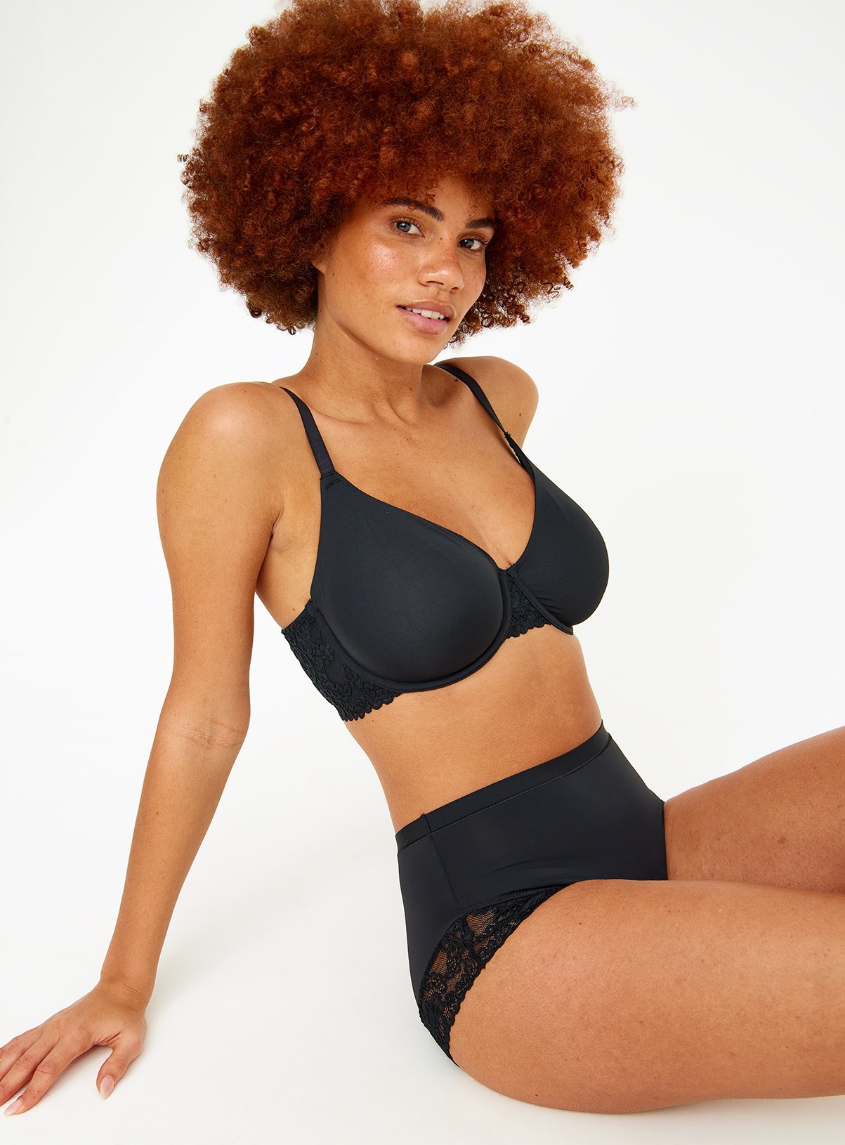 DD+ Black Underwired Lace Detail Full Cup Bra 38E