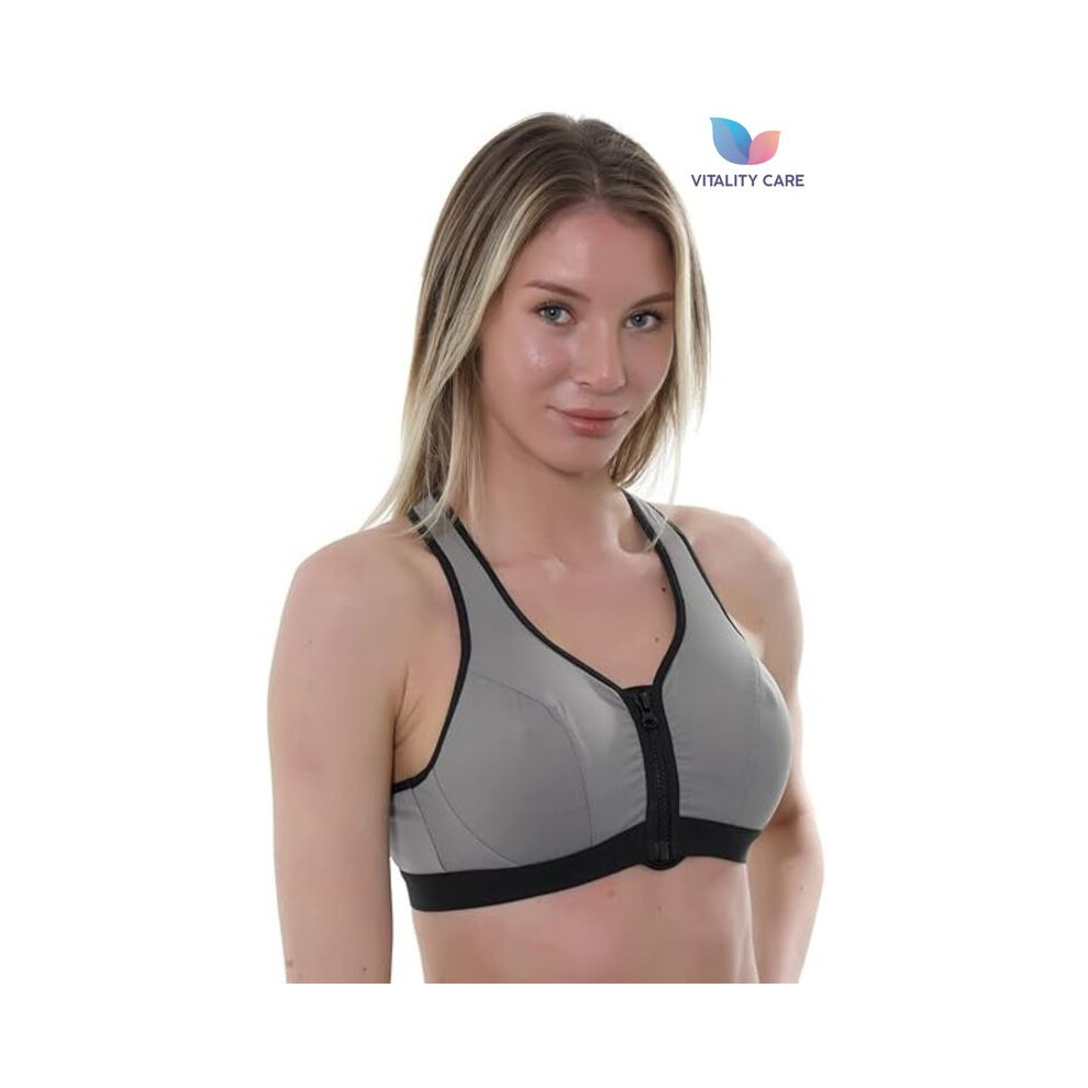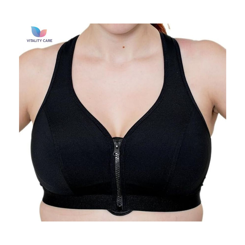 (38, DD) Vitality Care Womens Plus Size black Medium Sports Bra High Impact Non Wired Zip Front Fastening Workout Gym Sports Bra