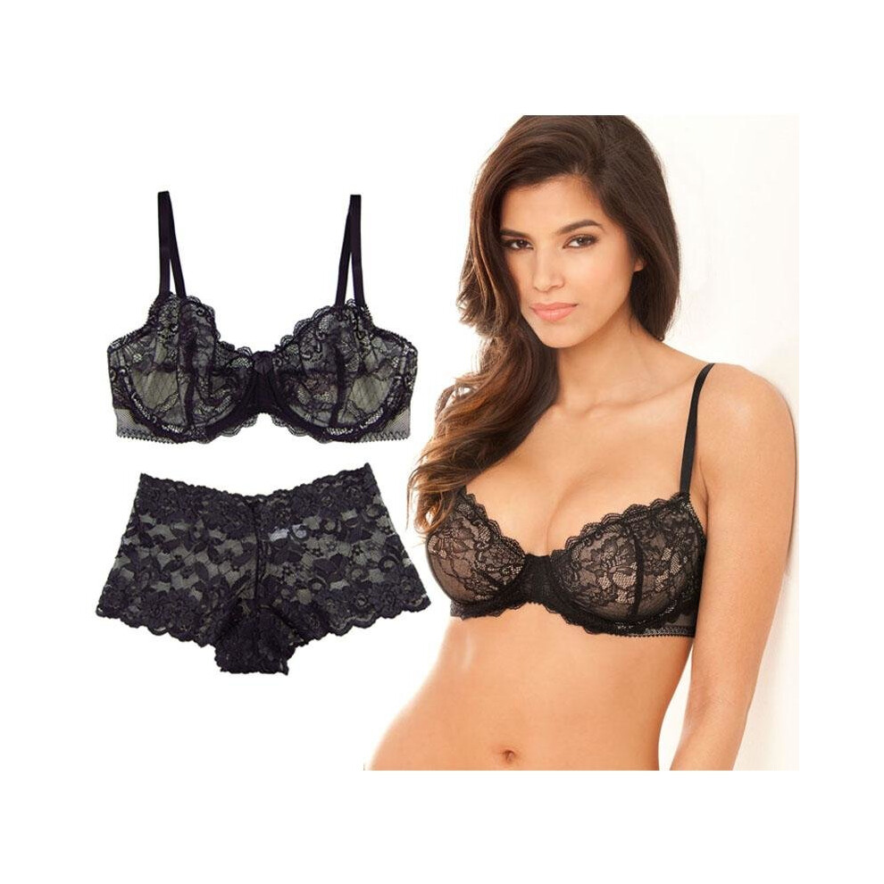 Women Bra Setes Sexy bra Underwire unlined Cup Lace Bra Brief Sets Lace Panties plus size 30 32 34 36 38 C D DD DDD E F NO.7607