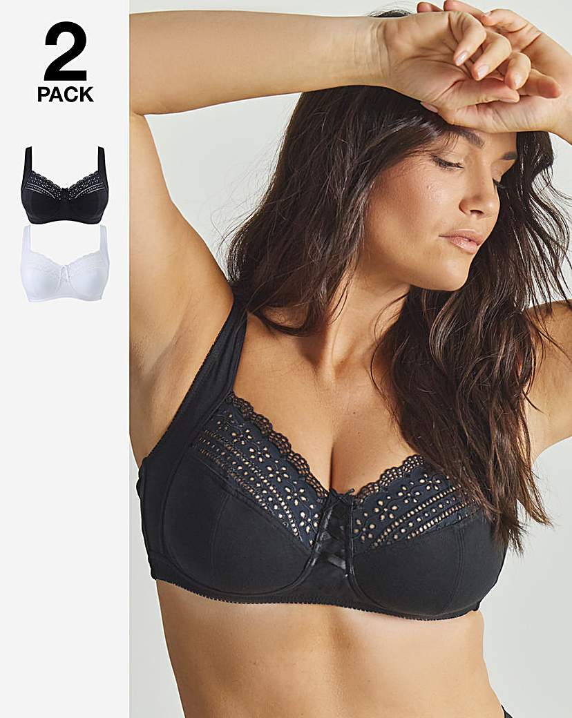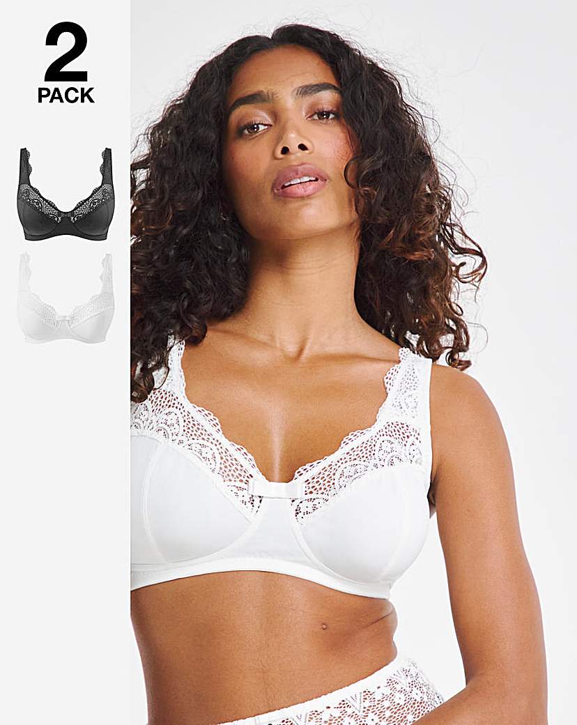 2 Pk White/Black Jane Non Wired Bras White/Black - Pretty Secrets - Size: 38DD