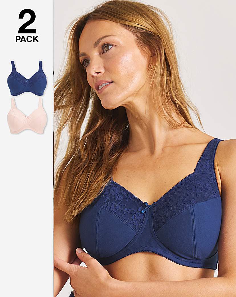 2 Pack New Sarah Full Cup Non Wired Bras Navy/Blush - Pretty Secrets - Size: 38DD