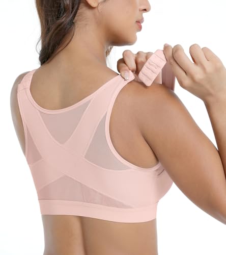 Curyon Front Closure Bras Full Coverage X-Back Support Posture Wirefree Non Padded Everyday Bra Adjustable Straps Pink 38DD