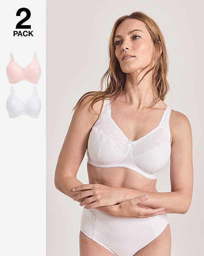2 Pack New Sarah Full Cup Non Wired Bras Blush/White - Pretty Secrets - Size: 38DD