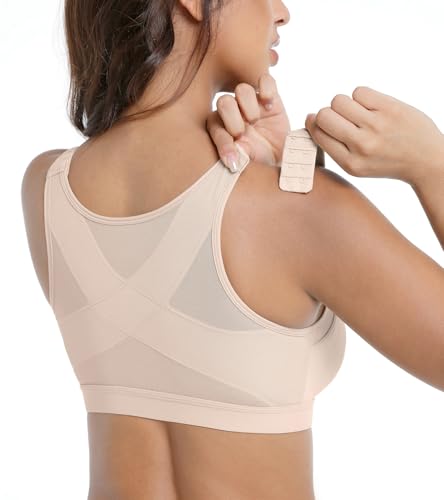 Curyon Front Closure Bras Full Coverage X-Back Support Posture Wirefree Non Padded Everyday Bra Adjustable Straps Beige 38DD