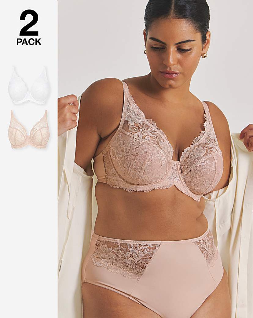 2 Pack New Jane Full Cup Wired Bras Blush/White - Pretty Secrets - Size: 38DD