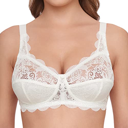 WingsLove Women's Bra Full Coverage Non-Padded Soft Cup Floral Lace Underwire Bras White 38DD